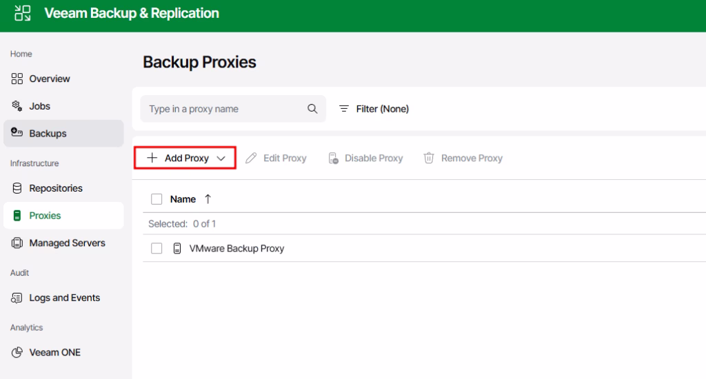 Now we have a new VMware Backup Proxy in the infrastructure: