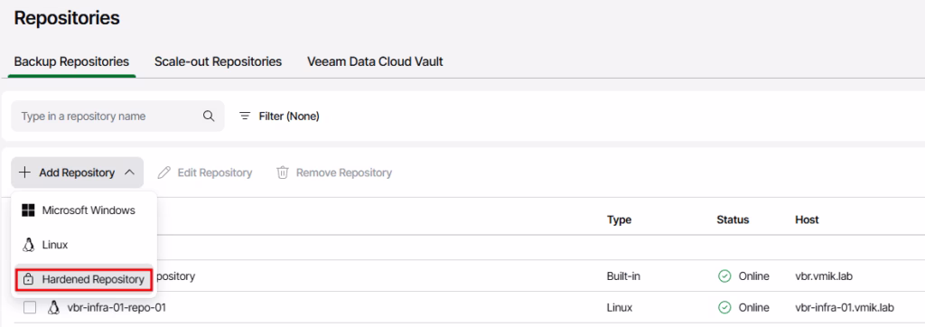 This is it. We have added a new repository, using the newly deployed Veeam Infrastructure Appliance: